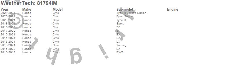 Below is an abbreviated list of applications for the Side Window Deflector.Civic, Honda, 2021, 2020, 2019, 2018, 2017, 2016