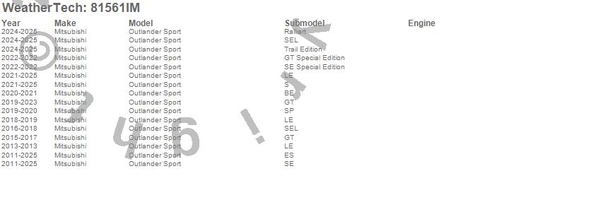 Below is an abbreviated list of applications for the Side Window Deflector.Outlander Sport, Mitsubishi, 2025, 2024, 2023, 2022, 2021, 2020, 2019, 2018, 2017, 2016, 2015, 2014, 2013, 2012, 2011