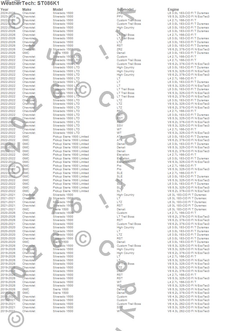 Below is an abbreviated list of applications for the Sill Protector.Pickup Sierra 1500 Limited, Sierra 1500, Silverado 1500, Silverado 1500 LTD, Chevrolet, GMC, 2026, 2025, 2024, 2023, 2022, 2021, 2020, 2019