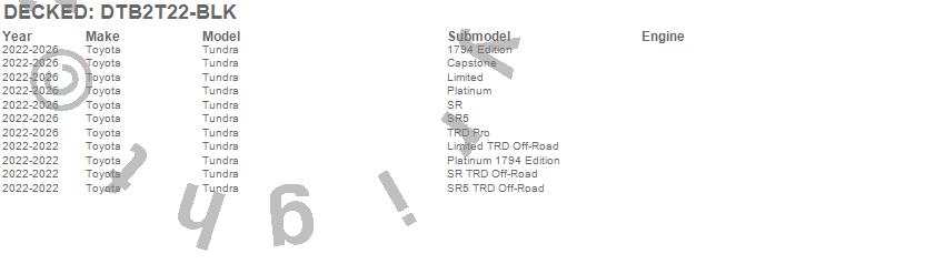 Brand: DECKEDPart Number: DTB2T22-BLKTruck Bed Storage Box Type: Black - Incl. 2 D-Ring Cargo Tie Downs And 2 Tool Tray PadsUPC: 815294026960