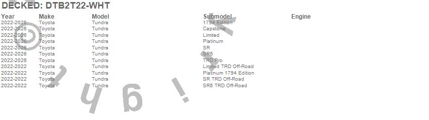 Below is an abbreviated list of applications for the Truck Tool Box.Tundra, Toyota, 2026, 2025, 2024, 2023, 2022