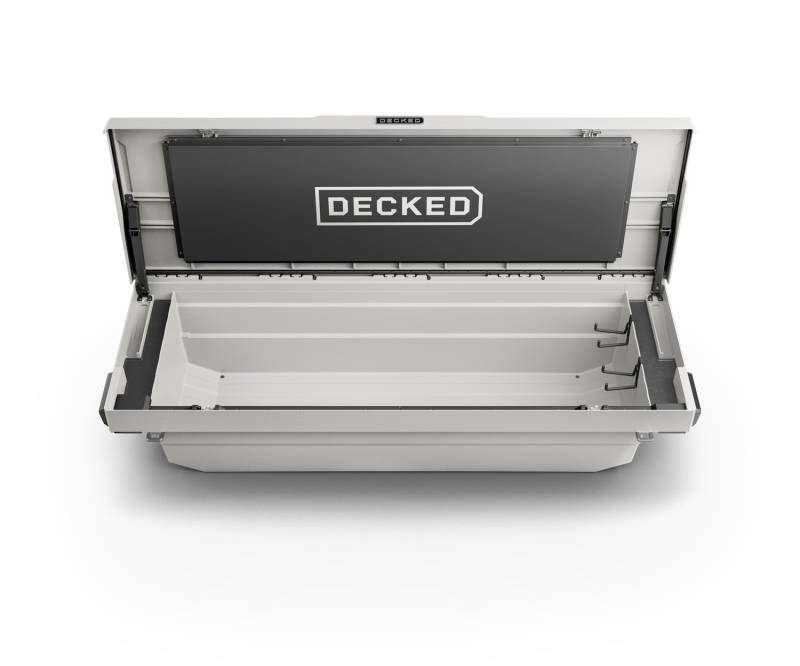 Brand: DECKEDPart Number: DTB2T22-WHTTruck Bed Storage Box Type: White - Incl. 2 D-Ring Cargo Tie Downs And 2 Tool Tray PadsUPC: 815294026977