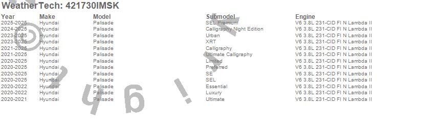 Below is an abbreviated list of applications for the SeatBack Cargo Liner HP w/Bumper Protector.Palisade, Hyundai, 2025, 2024, 2023, 2022, 2021, 2020
