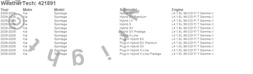 Below is an abbreviated list of applications for the Cargo Liner.Sportage, Kia, 2026