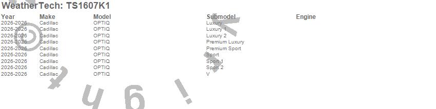 Below is an abbreviated list of applications for the WeatherTech SunShade Full Vehicle Kit.OPTIQ, Cadillac, 2026