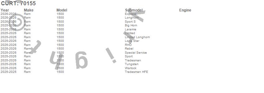 Brand: CURTPart Number: 70155Tow Bar Type: UPC: 612314059379