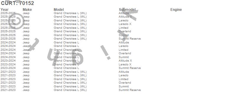 Below is an abbreviated list of applications for the Custom Tow Bar Base Plate.Grand Cherokee L, Grand Cherokee L (WL), Jeep, 2025, 2024, 2023, 2022, 2021