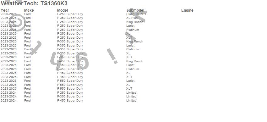 Below is an abbreviated list of applications for the WeatherTech SunShade Full Vehicle Kit.F-250 Super Duty, F-350 Super Duty, F-450 Super Duty, F-550 Super Duty, Ford, 2026, 2025, 2024, 2023