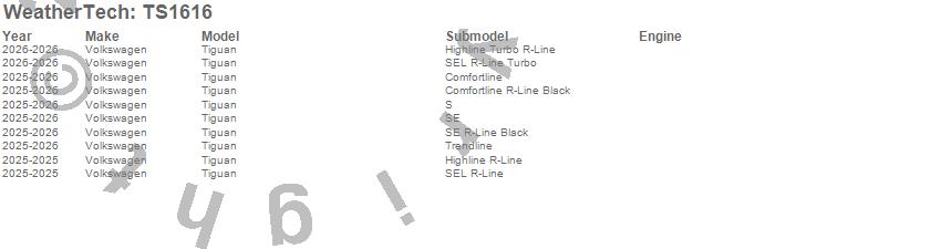 Below is an abbreviated list of applications for the WeatherTech SunShade.Tiguan, Volkswagen, 2026, 2025
