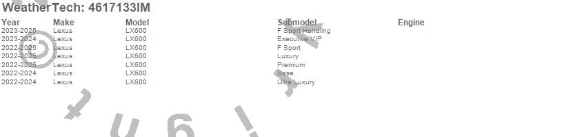 Below is an abbreviated list of applications for the FloorLiner HP.LX600, Lexus, 2025, 2024, 2023, 2022