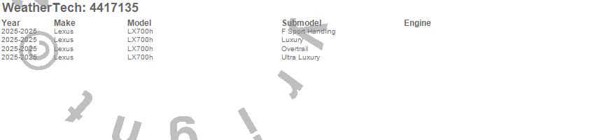 Below is an abbreviated list of applications for the FloorLiner DigitalFit.LX700h, Lexus, 2025