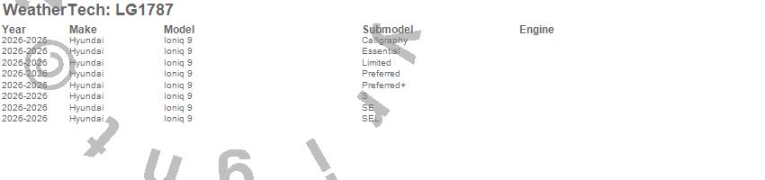 Below is an abbreviated list of applications for the LampGard.Ioniq 9, Hyundai, 2026