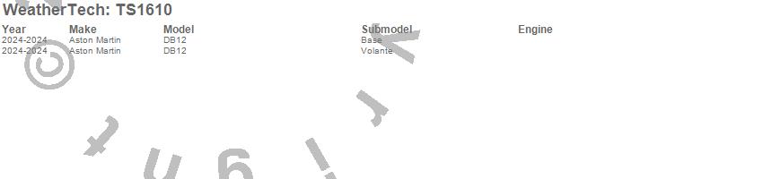 Below is an abbreviated list of applications for the WeatherTech SunShade.DB12, Aston Martin, 2024