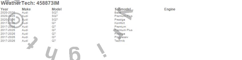Below is an abbreviated list of applications for the FloorLiner HP.Q7, SQ7, Audi, 2026, 2025, 2024, 2023, 2022, 2021, 2020, 2019, 2018, 2017