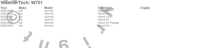 Below is an abbreviated list of applications for the All Weather Floor Mats.Carnival, Kia, 2026, 2025