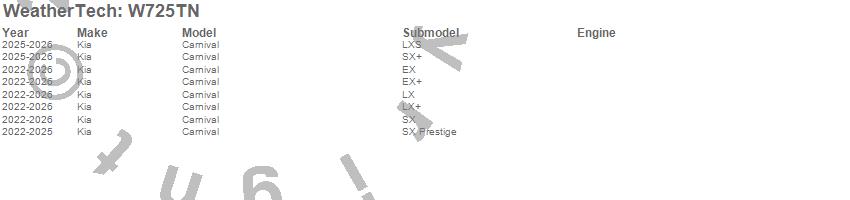 Below is an abbreviated list of applications for the All Weather Floor Mats.Carnival, Kia, 2026, 2025, 2024, 2023, 2022