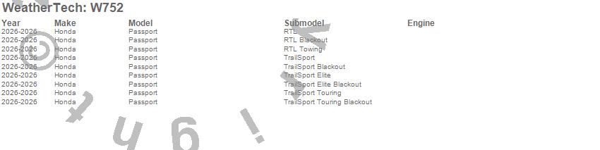 Below is an abbreviated list of applications for the All Weather Floor Mats.Passport, Honda, 2026