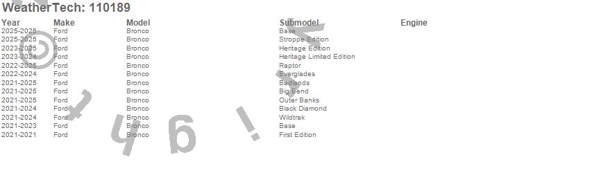 Below is an abbreviated list of applications for the MudFlap No-Drill DigitalFit.Bronco, Ford, 2025, 2024, 2023, 2022, 2021
