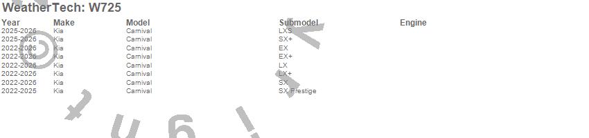 Below is an abbreviated list of applications for the All Weather Floor Mats.Carnival, Kia, 2026, 2025, 2024, 2023, 2022