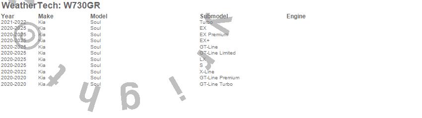 Below is an abbreviated list of applications for the All Weather Floor Mats.Soul, Kia, 2025, 2024, 2023, 2022, 2021, 2020