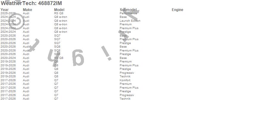 Below is an abbreviated list of applications for the FloorLiner HP.Q7, Q8, Q8 e-tron, RS Q8, SQ7, SQ8, Audi, 2026, 2025, 2024, 2023, 2022, 2021, 2020, 2019, 2018, 2017