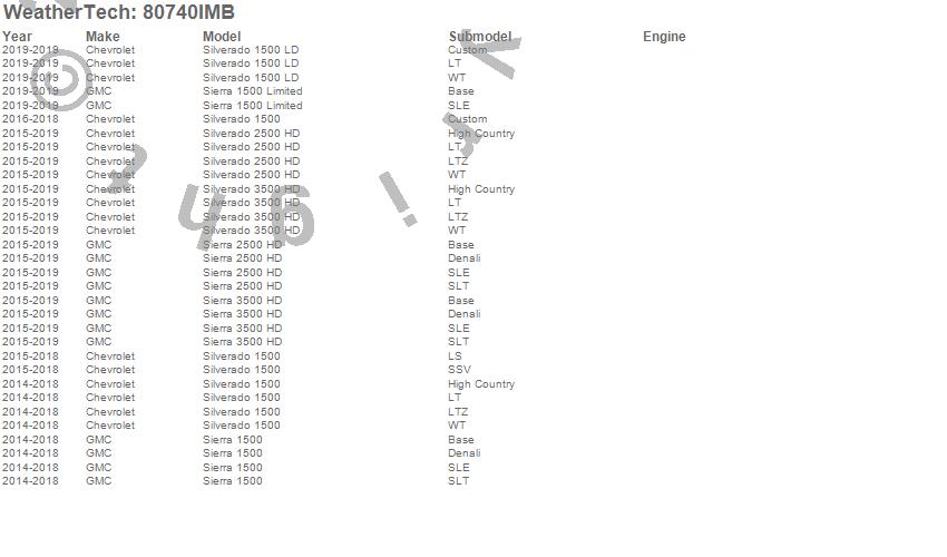 Below is an abbreviated list of applications for the Side Window Deflector.Sierra 1500, Sierra 1500 Limited, Sierra 2500 HD, Sierra 3500 HD, Silverado 1500, Silverado 1500 LD, Silverado 2500 HD, Silverado 3500 HD, Chevrolet, GMC, 2019, 2018, 2017, 2016, 2015, 2014