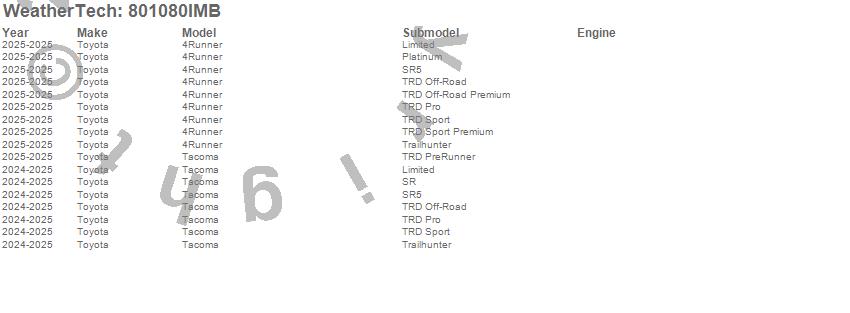 Below is an abbreviated list of applications for the Side Window Deflector.4Runner, Tacoma, Toyota, 2025, 2024
