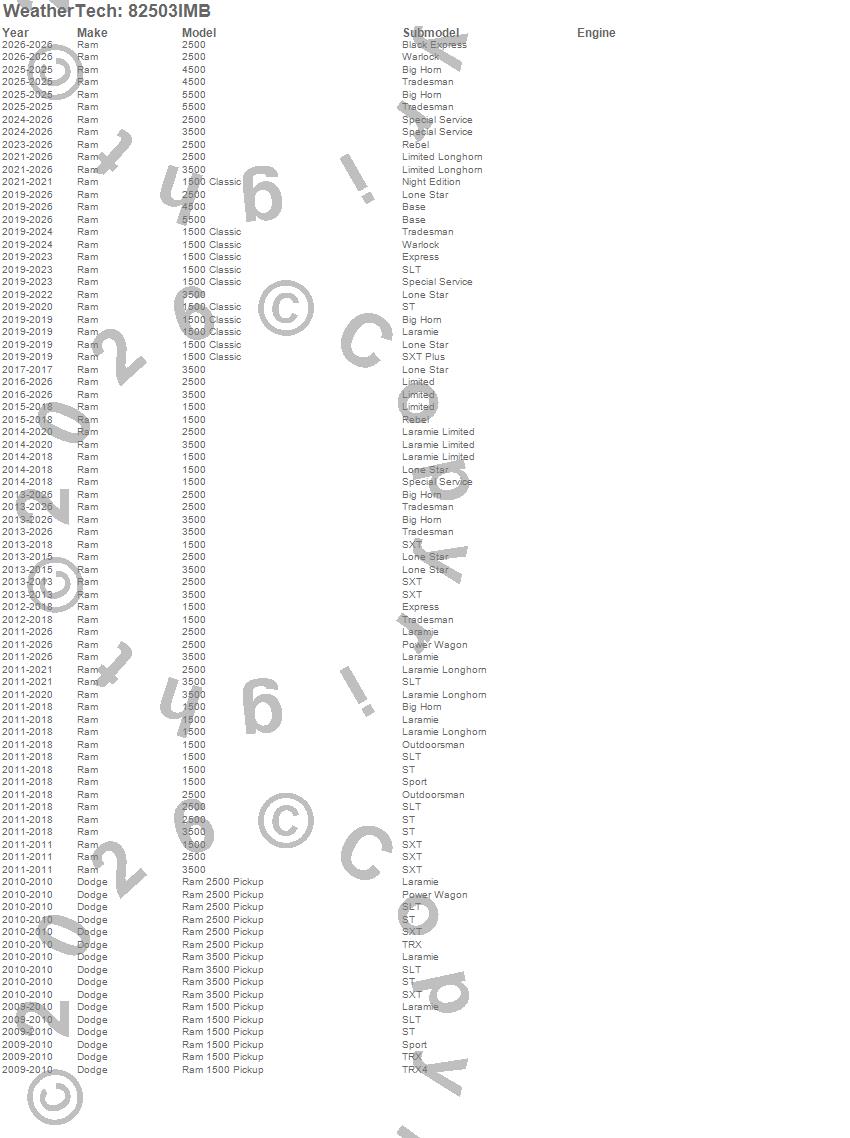 Below is an abbreviated list of applications for the Side Window Deflector Set.1500, 1500 Classic, 2500, 3500, 4500, 5500, Ram 1500, Ram 2500, Ram 3500, Dodge, Ram, 2026, 2025, 2024, 2023, 2022, 2021, 2020, 2019, 2018