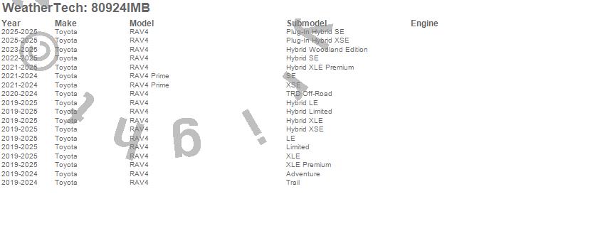 Below is an abbreviated list of applications for the Side Window Deflector.RAV4, RAV4 Prime, Toyota, 2025, 2024, 2023, 2022, 2021, 2020, 2019
