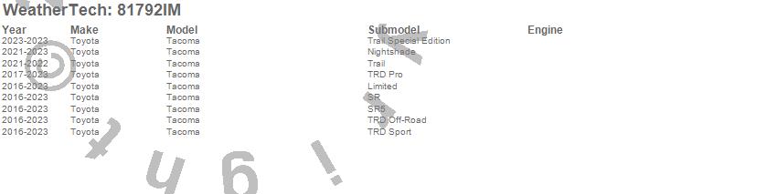 Below is an abbreviated list of applications for the Side Window Deflector.Tacoma, Toyota, 2023, 2022, 2021, 2020, 2019, 2018, 2017, 2016