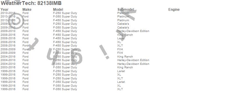 Below is an abbreviated list of applications for the Side Window Deflector Set.F-250 Super Duty, F-350 Super Duty, F-450 Super Duty, Ford, 2016, 2015, 2014, 2013, 2012, 2011, 2010, 2009, 2008, 2007, 2006, 2005, 2004, 2003, 2002, 2001