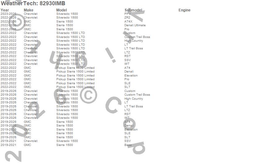 Below is an abbreviated list of applications for the Side Window Deflector Set.Pickup Sierra 1500 Limited, Sierra 1500, Silverado 1500, Silverado 1500 LTD, Chevrolet, GMC, 2026, 2025, 2024, 2023, 2022, 2021, 2020, 2019