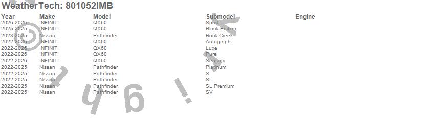 Below is an abbreviated list of applications for the Side Window Deflector.Pathfinder, QX60, INFINITI, Nissan, 2026, 2025, 2024, 2023, 2022