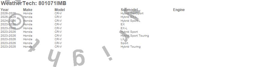 Below is an abbreviated list of applications for the Side Window Deflector.CR-V, Honda, 2026, 2025, 2024, 2023