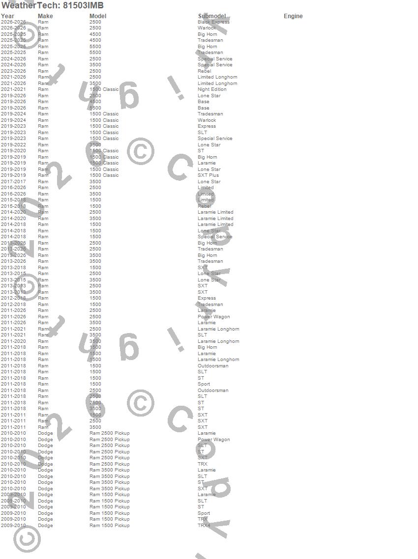 Below is an abbreviated list of applications for the Side Window Deflector.1500, 1500 Classic, 2500, 3500, 4500, 5500, Ram 1500, Ram 2500, Ram 3500, Dodge, Ram, 2026, 2025, 2024, 2023, 2022, 2021, 2020, 2019, 2018