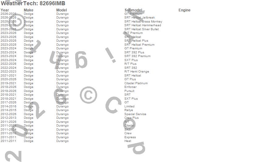 Below is an abbreviated list of applications for the Side Window Deflector Set.Durango, Dodge, 2026, 2025, 2024, 2023, 2022, 2021, 2020, 2019, 2018, 2017, 2016, 2015, 2014, 2013, 2012, 2011