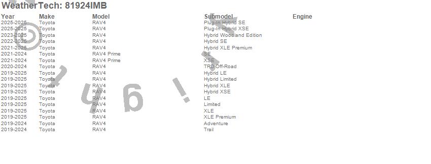 Below is an abbreviated list of applications for the Side Window Deflector.RAV4, RAV4 Prime, Toyota, 2025, 2024, 2023, 2022, 2021, 2020, 2019