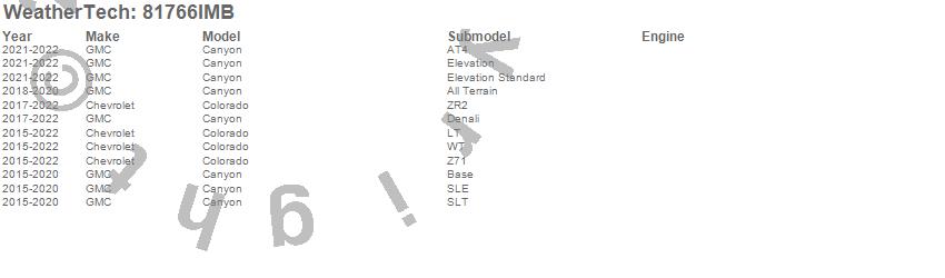 Below is an abbreviated list of applications for the Side Window Deflector.Canyon, Colorado, Chevrolet, GMC, 2022, 2021, 2020, 2019, 2018, 2017, 2016, 2015