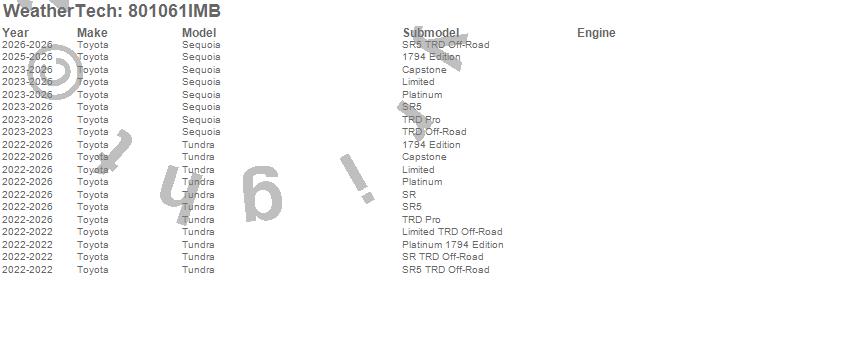 Below is an abbreviated list of applications for the Side Window Deflector.Sequoia, Tundra, Toyota, 2026, 2025, 2024, 2023, 2022