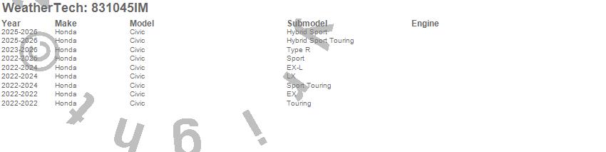 Below is an abbreviated list of applications for the Side Window Deflector.Civic, Honda, 2026, 2025, 2024, 2023, 2022