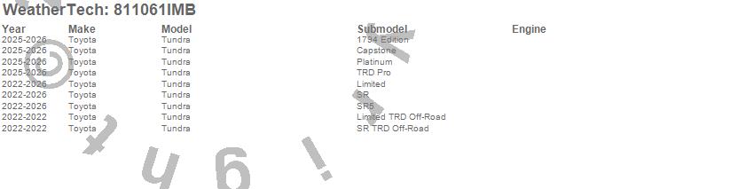 Below is an abbreviated list of applications for the Side Window Deflector.Tundra, Toyota, 2026, 2025, 2024, 2023, 2022