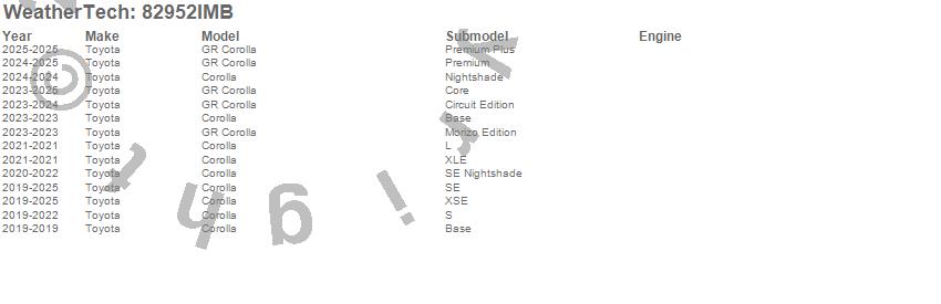 Below is an abbreviated list of applications for the Side Window Deflector Set.Corolla, GR Corolla, Toyota, 2025, 2024, 2023, 2022, 2021, 2020, 2019