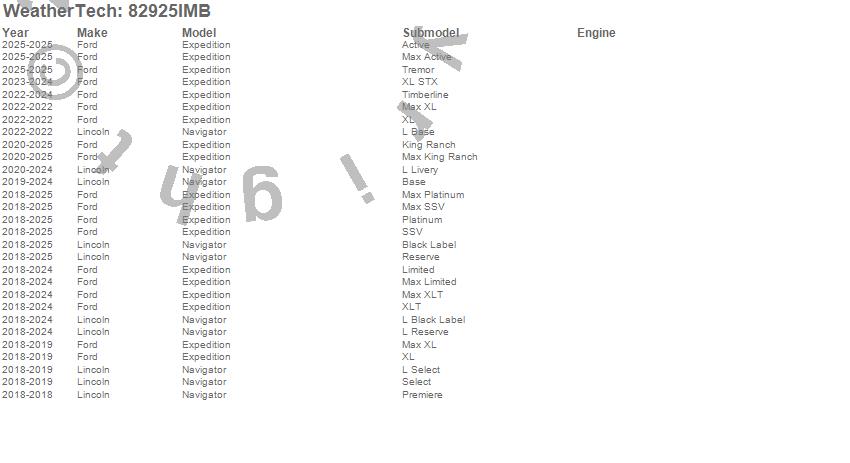 Below is an abbreviated list of applications for the Side Window Deflector Set.Expedition, Navigator, Ford, Lincoln, 2025, 2024, 2023, 2022, 2021, 2020, 2019, 2018