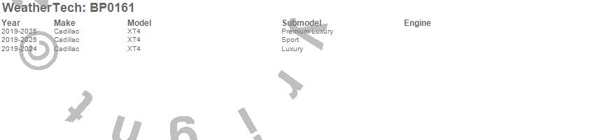 Below is an abbreviated list of applications for the BumperTopper.XT4, Cadillac, 2025, 2024, 2023, 2022, 2021, 2020, 2019