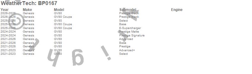 Below is an abbreviated list of applications for the BumperTopper.GV80, GV80 Coupe, Genesis, 2026, 2025, 2024, 2023, 2022, 2021