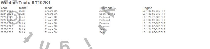 Below is an abbreviated list of applications for the Sill Protector.Encore GX, Buick, 2026, 2025, 2024, 2023, 2022, 2021, 2020