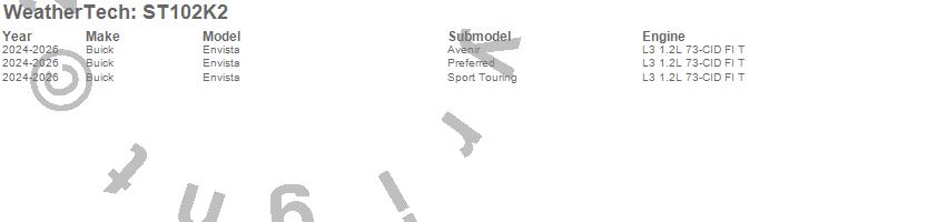Below is an abbreviated list of applications for the Sill Protector.Envista, Buick, 2026, 2025, 2024