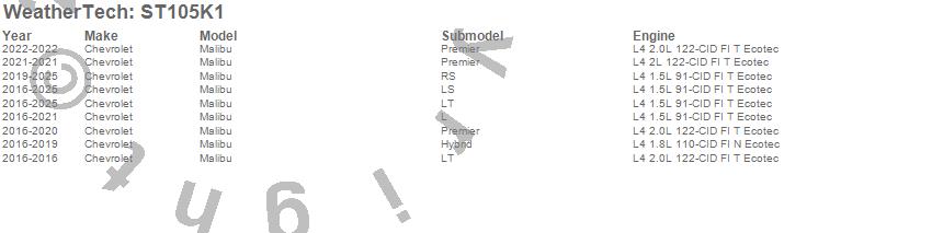 Below is an abbreviated list of applications for the Sill Protector.Malibu, Chevrolet, 2025, 2024, 2023, 2022, 2021, 2020, 2019, 2018, 2017, 2016