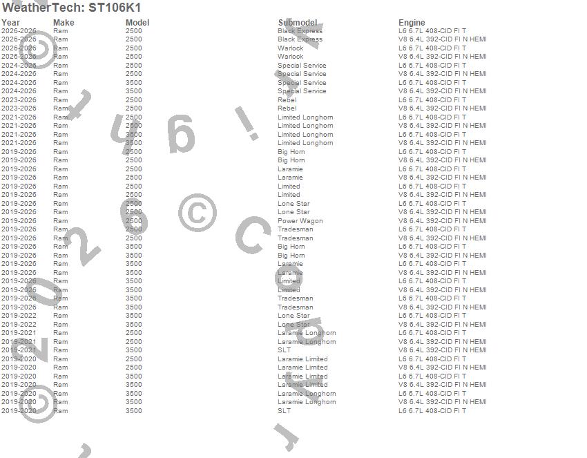 Below is an abbreviated list of applications for the Sill Protector.2500, 3500, Ram, 2026, 2025, 2024, 2023, 2022, 2021, 2020, 2019