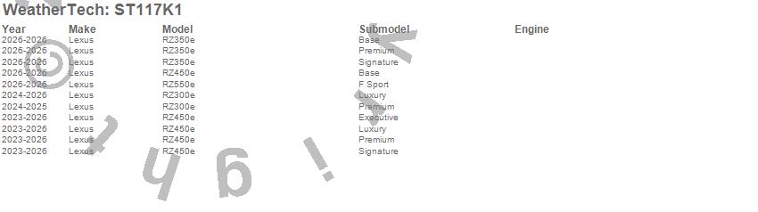 Below is an abbreviated list of applications for the Sill Protector.RZ300e, RZ350e, RZ450e, RZ550e, Lexus, 2026, 2025, 2024, 2023
